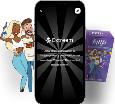 Naast de app heeft Panja ook een fysieke versie. Hierbij draait het om de spelkaarten. Die geven jou – en je vrienden - de meest hilarische opdrachten waarbij je niet bang moet zijn voor public exposure, want zelfs je social media wordt als wapen ingezet.